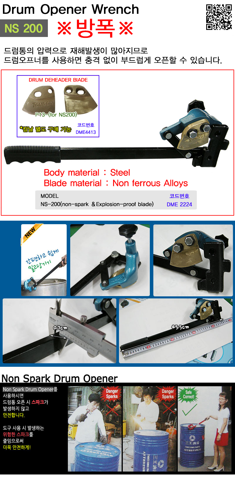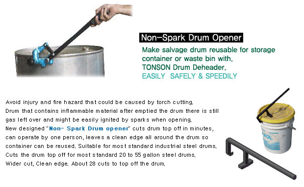 ●NS-200(DME2224)●NS-200-S●NS-200-H●NS200●EX- Drum Opener●드럼 오프너●Drum Deheader●Hardened Steel Blade●Non-Spark Drum Opener●Non-sparking Blade●completely non-sparking●Wider cut●Clean edge●(TONSON)