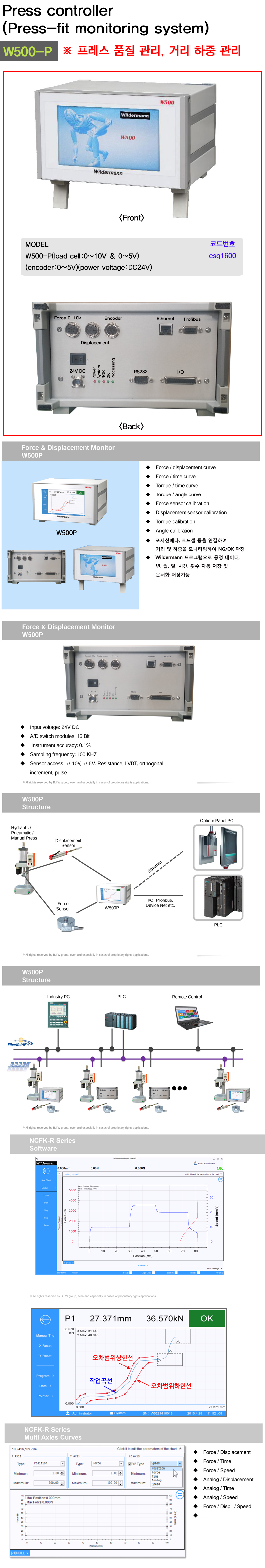 W500-P●(W500P)●Pressure Quality Control System●Pressure Quality Control System●forcedisplacement curve●force sensor calibratio●프레스 품질관리 시스탬●프레스 압입 하중관리 시스템●프레스 모니트링시스탬●프레스 압입 하중 공정 관리●(BIW,DME)