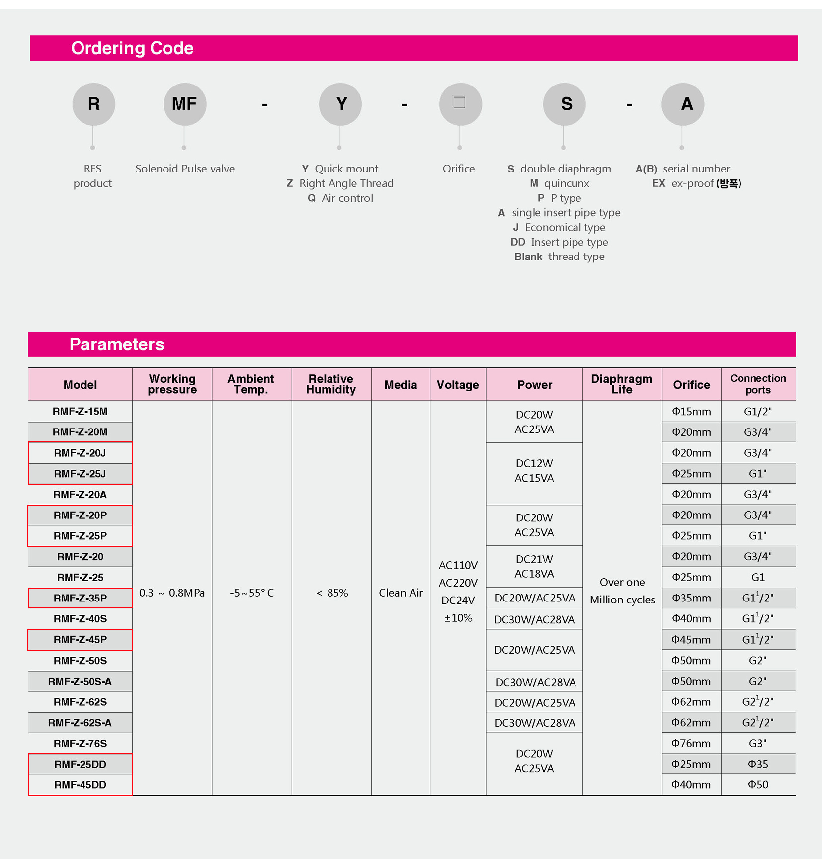 RMF-25DD●RMF-45DD●RMF25DD●RMF45DD●2/2way Coupling Type Pulse Valve●RFS lnsert Pipe Type Pulse Valve●Ex Proof 카풀링 타입 집진기 펄스 밸브●RFS 집진기 밸브●RFS 카풀링 타입 펄스밸브●(connecting=35mm,50mm)●(3~8bar)●(RFS)