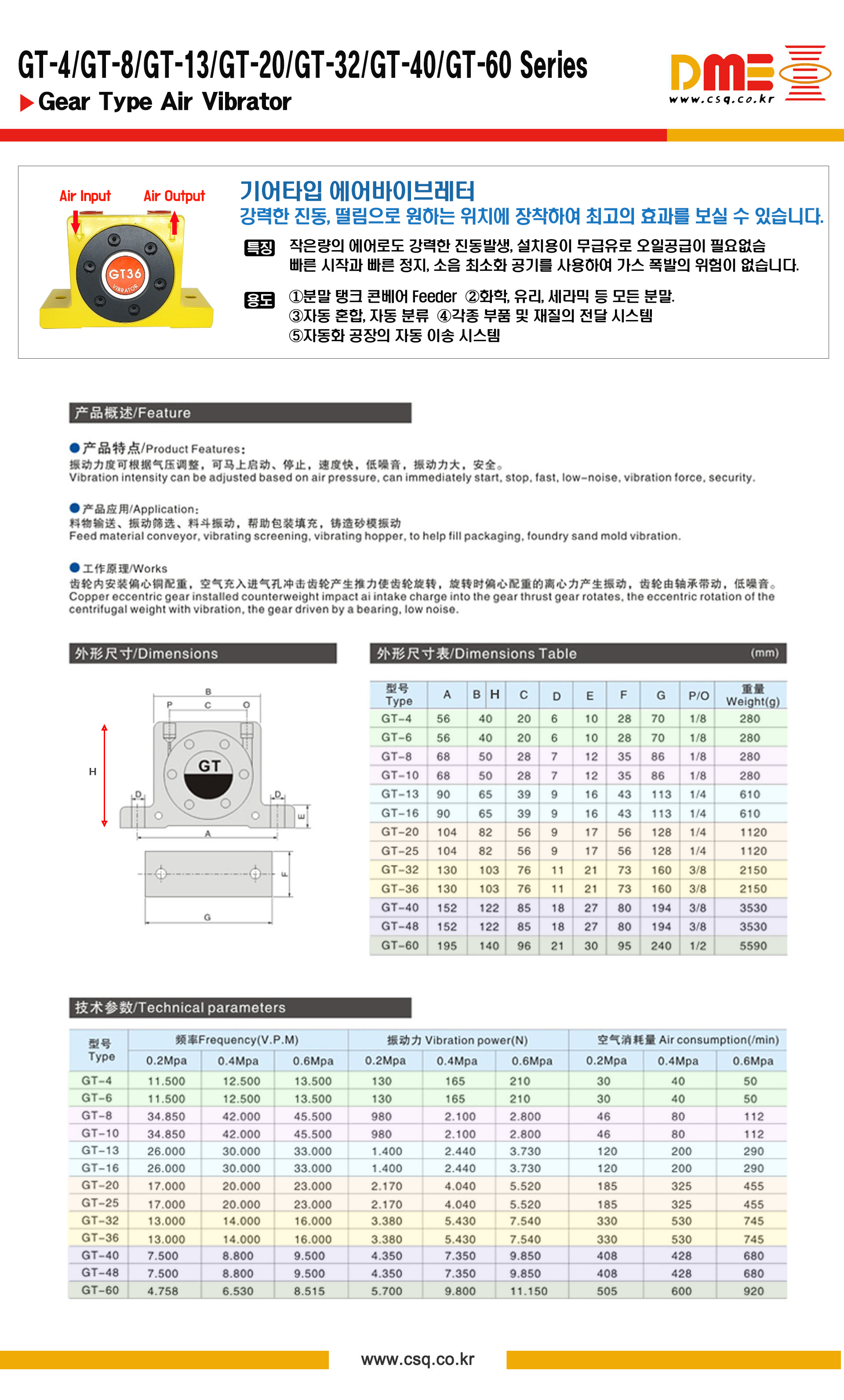 (air at 6bar consumption=680 L/min) (GT-40 same GT-48)