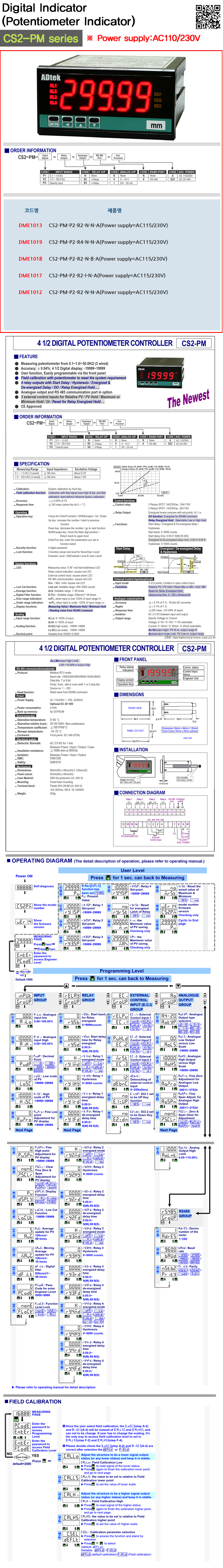 CS2-PM●CS2-PM-P2-R2●(CS2PM)●Potention meter Indicator●Potention meter Digital Indicator●디지털 인디게이트●포텐션 메타 디지털 인디게이터●포텐션메타 인디게이트●가변저항 포텐션미터●변위센서 인디게이트●Digital Indicator●(W=96mm, H=48mm, D=120mm)●(ADTek)