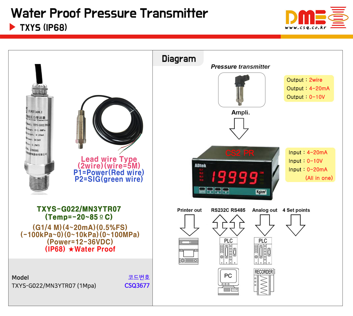 ●( TXYS) with (CS2-PR 인디게이터 결선도) (4-20mA) (0-10V) (2wire or 3wire)
