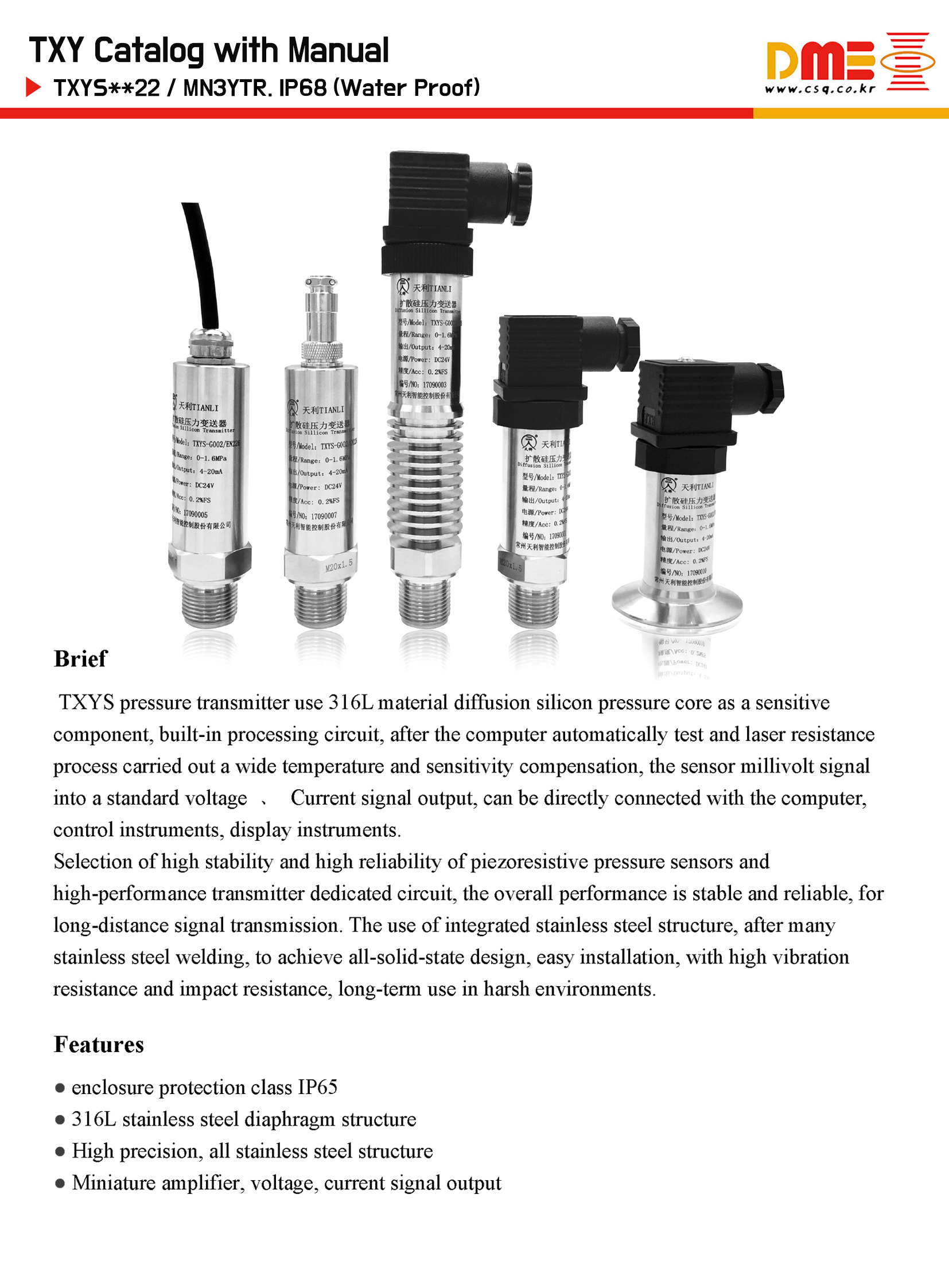 ●(Water Proof , IP68, gauge pressure) Pressure Transmitter (0.5%)