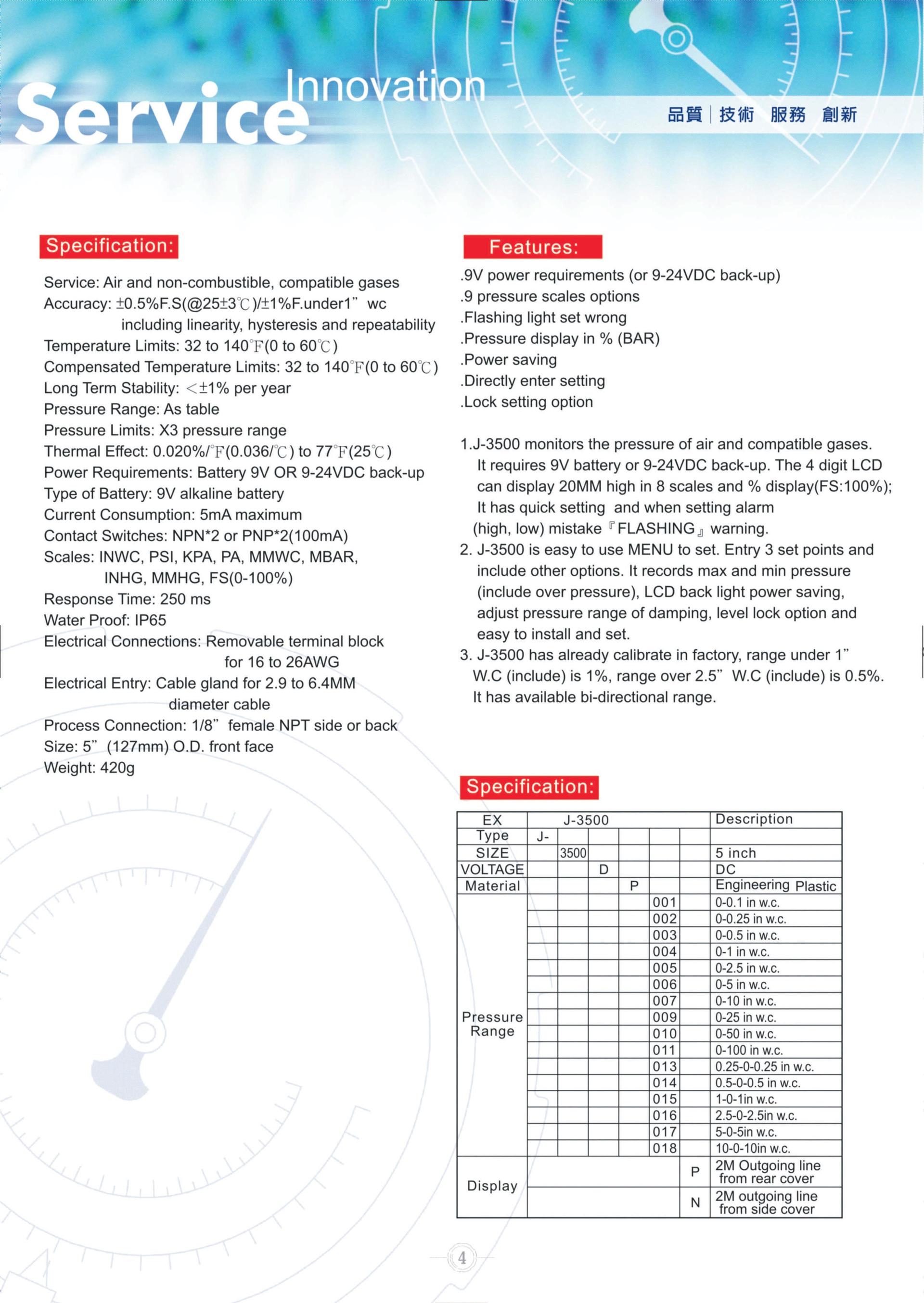 ●J-3500-DP-011 (0~100 in w.c) (csq4166)