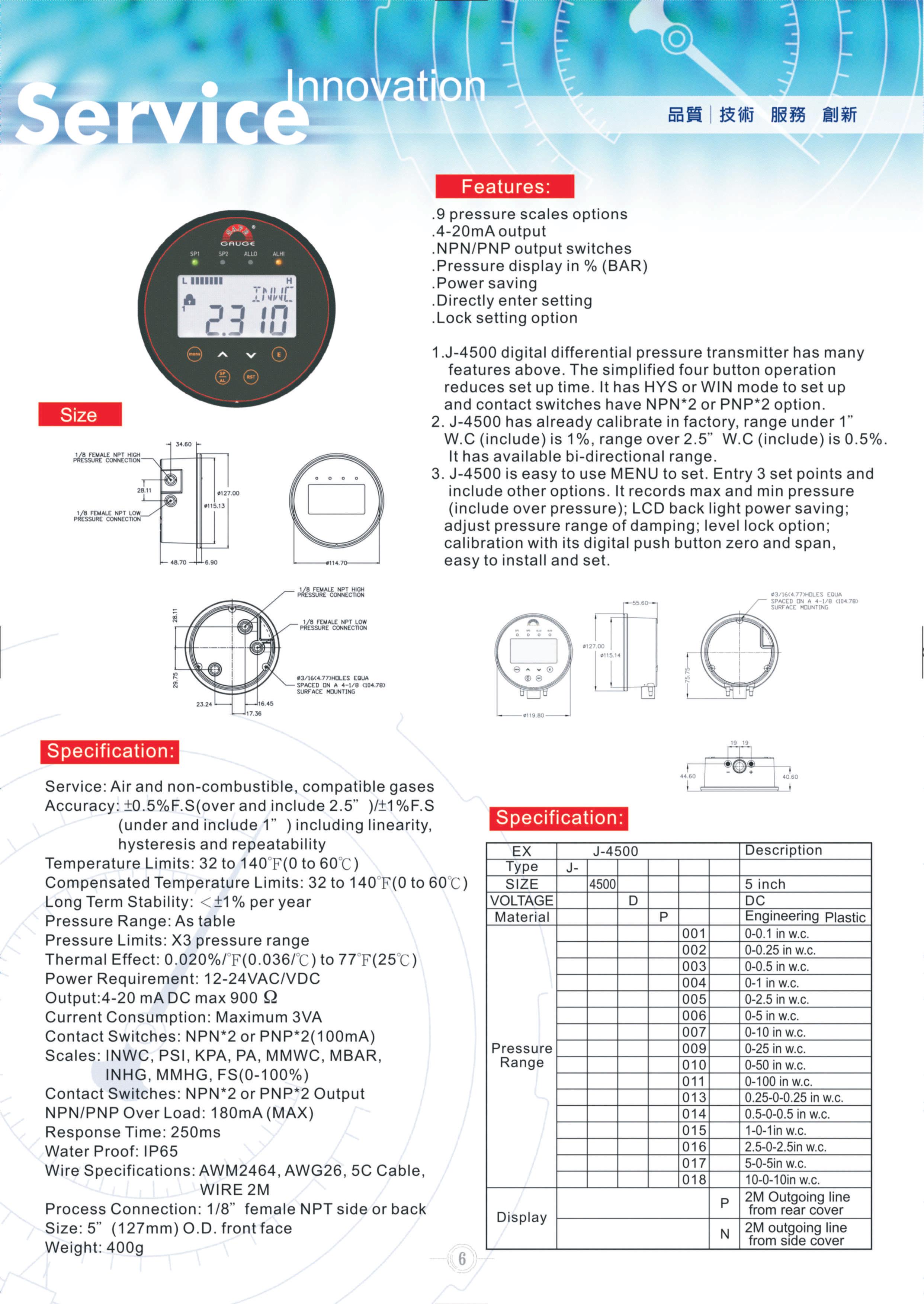 ●J-4500-DP-010 (output=4~20mA, 2NPN)