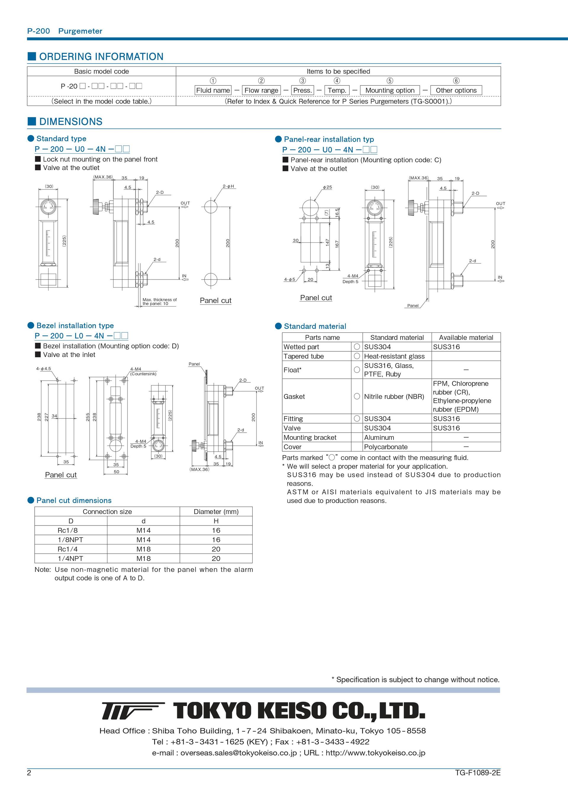 ●Flow meter (wetted+needle valve=sus304) (bottom rear=Top rear)