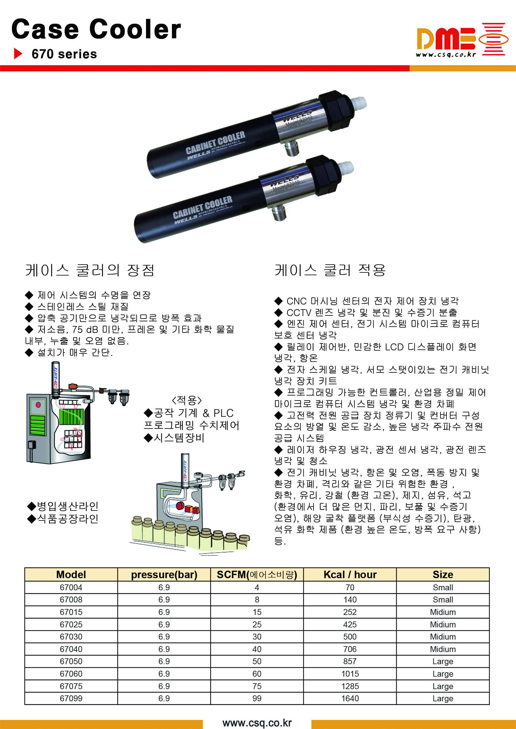 냉방 능력 W에 해당하는 (cas cooler 670시리즈) 제품모델을 선정합니다.