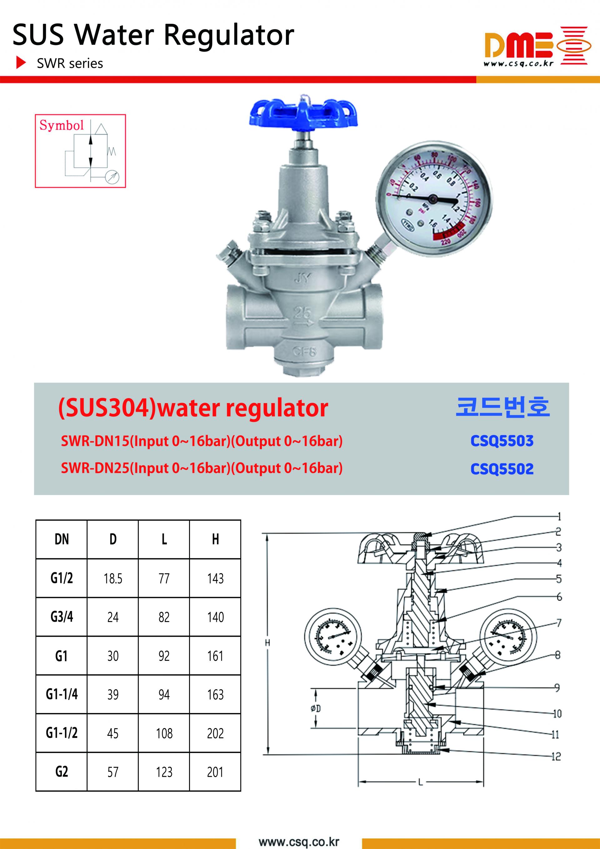 SWR●SWR-DN15●SWR-DN20●SWR-DN25●SWR-DN32●SWR-DN40●SWR-DN50●SM5201●on relieving lWater Regulatorn●스텐레스 물용 레귤레이터●스텐레스 수압 레귤레이터●SUS304 수압 레귤레이터●D06F HONEYWELL●(G1/2"~G2")●(0~16bar)●(DME)