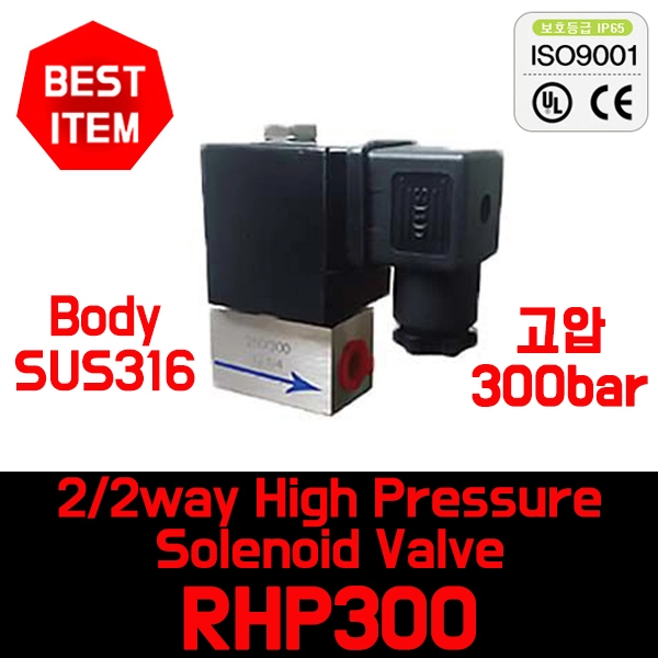 RHP300●(RHP350,RHP250 out)●2/2way NC High Pre0ssure Solenoid Valve●고압 솔레노이드 밸브●고압 밸브●고압 솔밸브●Oil,water solenoid valve●고압 에어 솔레노이드 밸브●고압 오일솔레노이드 밸브●(Media=Air, Water, oil)●(G1/4 F)●(0~300bar)●(RFS)