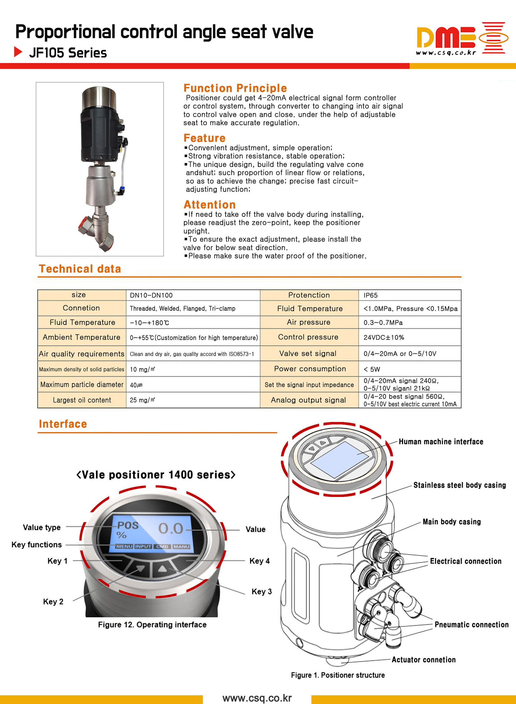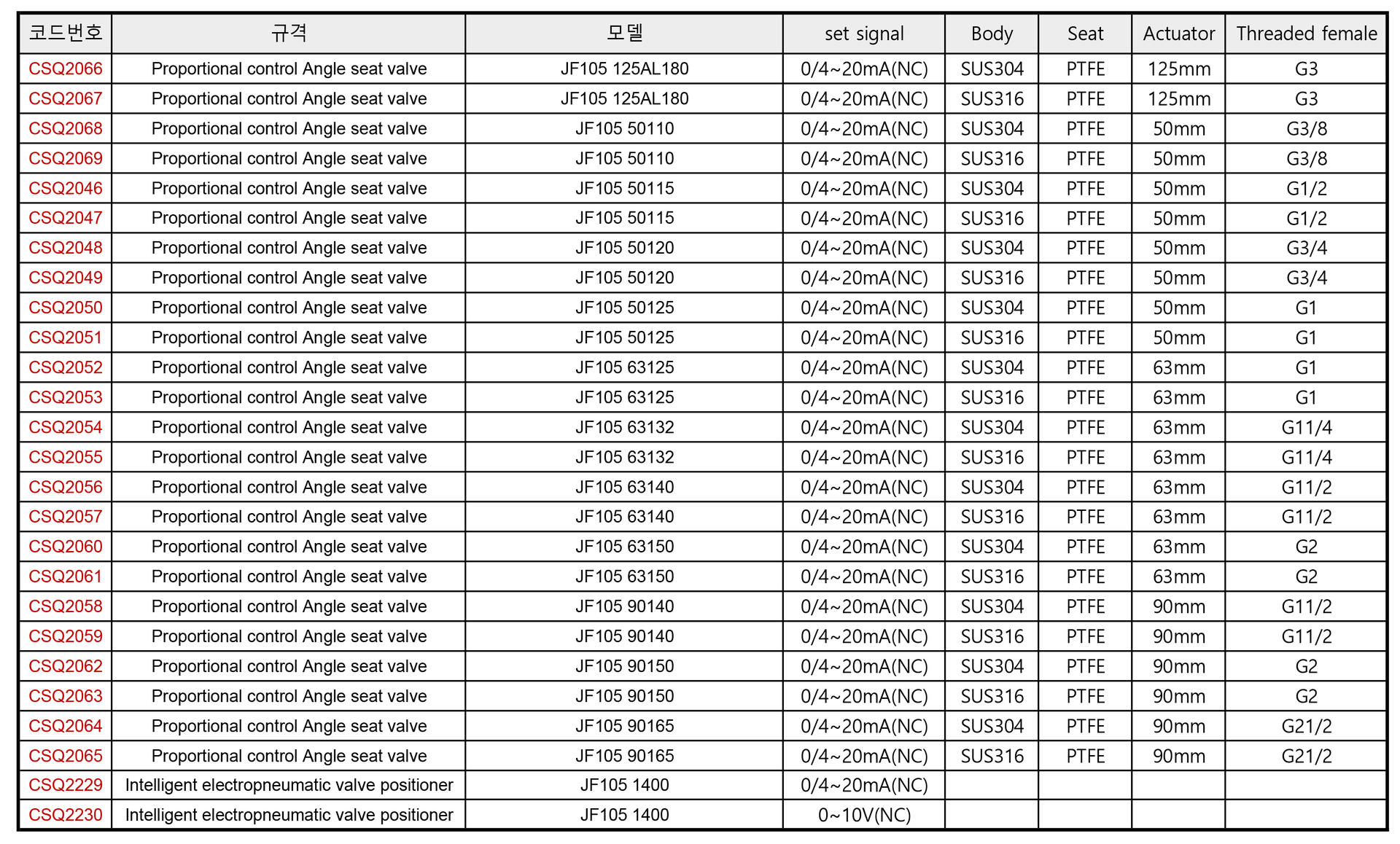 JF105(NC)●NC Proportional control angle seat valve●에어 비례 컨트롤 밸브●에어 프로페셔날 앵글 밸브●에어 프로페셔널 밸브●에어 자동콘트롤 밸브●스팀 유량 자동조절 밸브●유량 디지털 써보 밸브●물유량 자동조절 서보 밸브●temp=0~180c●seat=PTFE●(G1/2F~G3F)●(ESG,DME)